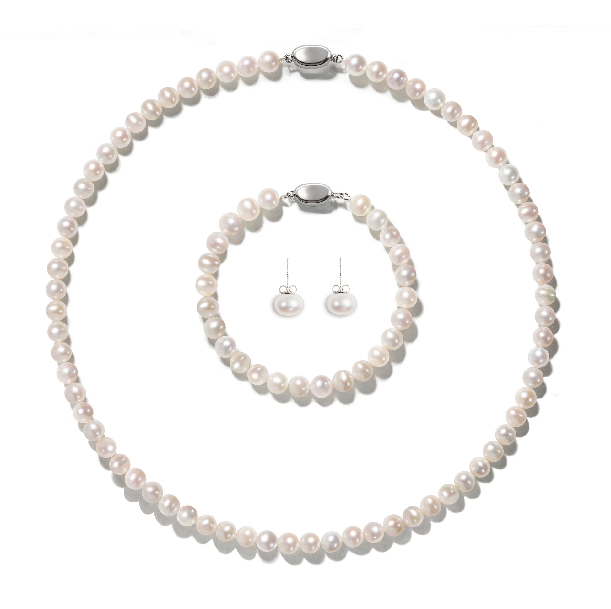 7-8MM AAAA+ Round Freshwater Cultured Pearl Necklace Set Includes Stunning Bracelet and Stud Earrings Jewelry for Women